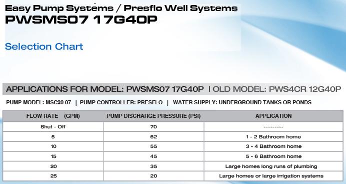 Pearl by Calpeda Presflo Well System 1/2 HP 230/1/60, 15 GPM at 30 PSI, PWSMS07-17G40PC. Ideal for average to large two story homes or long runs of plumbing. Four water outlets can be operated at the same time without substantially reducing performance. Used only to pump from wells NOT for inline boosting.
